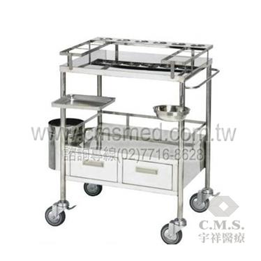 產品規格: 材質 不鏽鋼 規格 60(L)×45(W)×85(H) cm CD碗 Ø16X5(H)cm 器械盤 24(L)X20(W)cm 污物桶 Ø18cmX22(H)cm 配件 四個4"活動橡膠輪、對角剎車 本圖片僅供展示諮詢使用 為配合中華民國藥事法之規定,醫療器材類不得經由網路販售 如對商品有疑問需要諮詢,歡迎您的來電◎版權所有 翻版必究◎