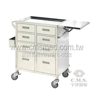產品規格: 材質 不鏽鋼 規格 65(L)×45(W)×90(H) cm 第一~三層抽屜 27.5(W)×39(D)×12(H)cm 第四個抽屜 27.5(W)×39(D)×25(H)cm 置物盒 45(L)×10(W)×12(H)cm 工作板 30(L)×45(W)cm 配件 四個4"活動橡膠輪、對角剎車、木製急救板 本圖片僅供展示諮詢使用 為配合中華民國藥事法之規定,醫療器材類不得經由網路販售 如對商品有疑問需要諮詢,歡迎您的來電◎版權所有 翻版必究◎